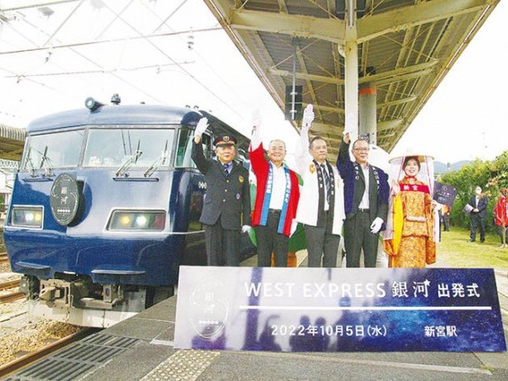 「銀河」昼行初便が出発 JR西日本の観光列車
