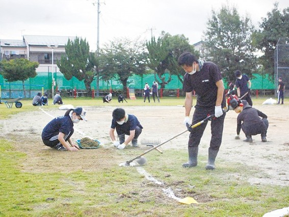 良好なグラウンドに 運動会に向け整備 三輪崎小
