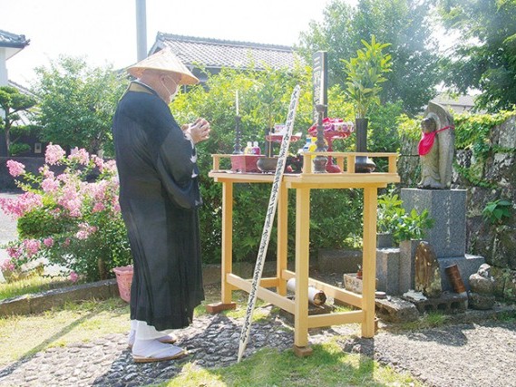 安楽地蔵で法要を営む中島住職