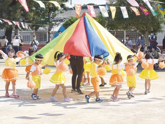 園児の笑顔あふれる 新宮市立佐野保育所で2日、運動会があり、保護者らの声援を受け、全園児52人がこれま