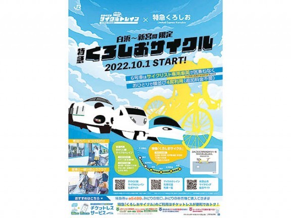 JR西日本和歌山支社は10月から、白浜~新宮間限定で特急「くろしお」に自転車を分解せずに持ち込める新サービス「くろしおサイクル」を開始する。 昨年9月から普通電車に... 続きを読む