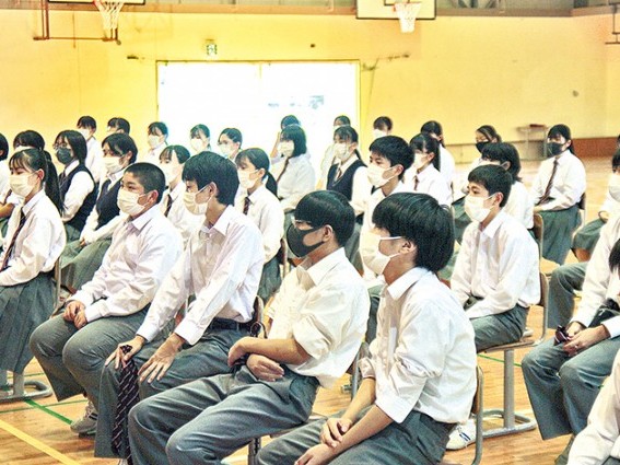普段の生活など見直す 新宮市立城南中学校の3年生62人が4日、薬物乱用防止講座「薬物のこと ちゃんと知