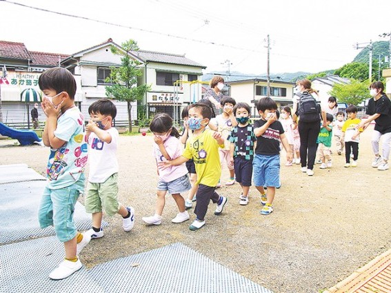 自分の命、自分で守る 丹鶴幼で火災避難訓練