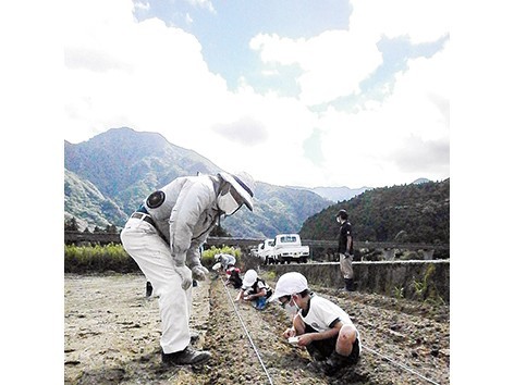 休耕田を景観整備に活用 熊野川小1・2年生が協力