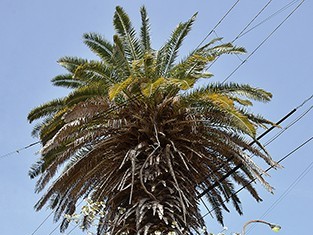 ヤシからサクラの枝が伸びる