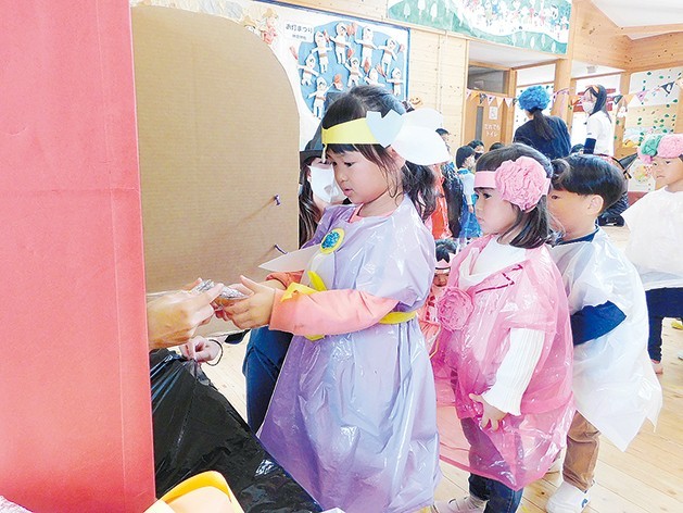 新宮市立丹鶴幼稚園で10月30日、「ハロウィーン集会」が開かれた。園児ら56人は、この日に向けて手作りしていた衣装を披露。それぞれかわいらしい「パンプキン」や「魔女」、「おばけ」などになりきった。 ... 続きを読む