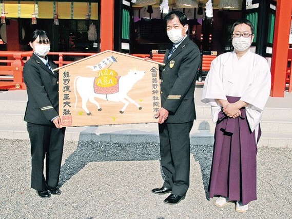 新宮市の熊野速玉大社で11日、来年の干支(えと)、「辛丑」(かのとうし)の大絵馬の授与式があり、濱中孝成禰宜(ねぎ)からJR新宮駅の小谷典史駅長に手渡された。 大絵馬はヒノキ製で... 続きを読む