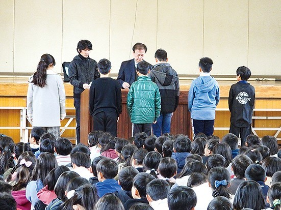 地域の先輩から学ぶ 勉強の大切さなど 神倉小6年生