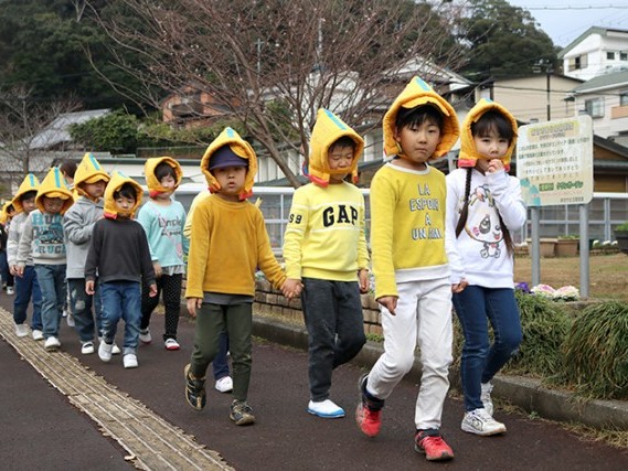 新宮市立丹鶴幼稚園で24日、地震・津波を想定した避難訓練があった。3~5歳児66人は防災頭巾をかぶり、すぐ近くの新宮市保健センター横にあるタウンガーデンへと急いで逃げた。 保育室や園庭で好き... 続きを読む