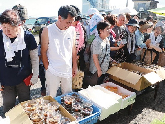 新宮市三輪崎漁港の食べ処・益栄丸番屋で11日、夕市があった。うにごはんやトコブシ、ひろめ寿司(ずし)などの海産物、無料で振る舞われた金魚すくい、子どもくじびきを目当てに大勢の親子連れらが来店し行列をつくった。... 続きを読む