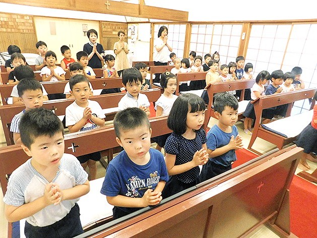 新宮市野田にあるマリア保育園は6日、同園内の教会で平和学習を実施。4~5歳児の47人は、「世界のみんなが神さまの子どもであり、世界のみんなが友だちであることを知る」を目的に、平和のために祈った。... 続きを読む