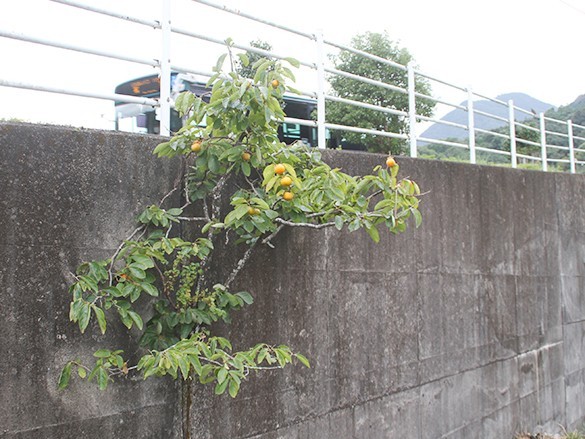 チマタを探索「市道擁壁の〝ど根性柿〟」