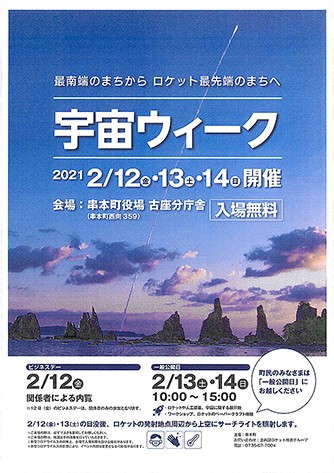 国内で初めてとなる民間企業によるロケット発射場の建設が進む串本町で12日(金)~14日(日)、「宇宙ウイーク」と題した、宇宙やロケットに理解を深めてもらうことを目的とした催しが開かれる=チラシ=。