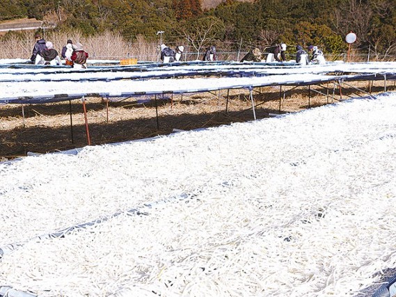 切り干し大根の加工始まる 御浜町上市木の御浜天地農場で1日、切り干し大根の天