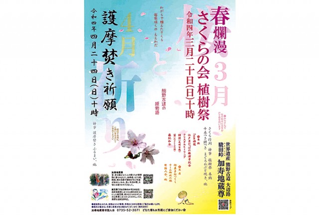 世界遺産の熊野古道「大辺路駿田峠」にある加寿地蔵尊で20日(日)午前10時から、春爛漫「さくらの会植樹祭」が開催される。加寿地蔵尊世話人会が主催。