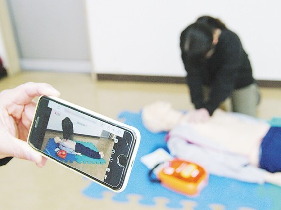 通報者が現場の状況を映像で共有できる(新宮市消防本部で撮影)
