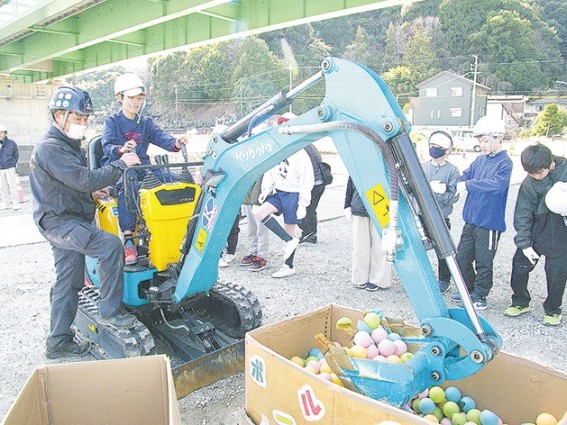 新宮市立王子ヶ浜小学校5年生44人が7日、新宮紀宝道路の紀宝鵜殿IC付近で、工事現場見学を行った。新宮紀宝道路や建設業界などについて説明を受けた後、ミニショベルカーや実際の建設機械の試乗などの体験を通して、建設業について理解を深... 続きを読む