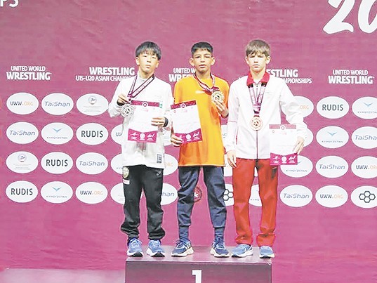 銀メダルを獲得した3人 新宮ジュニアレスリングクラブの選手は写真左