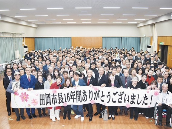 4期16年にわたり新宮市政を担った田岡実千年市長(64)が29日、任期最終日を迎え、市長としての任務を終えた。終業後には市役所別館で退任式があり、職員や市民ら約400人が訪れて田岡市長をねぎらうとともに、別れを惜しんだ。... 続きを読む