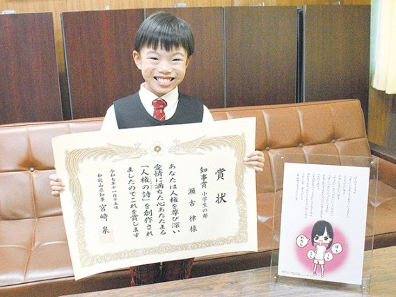 「人権の詩」で知事賞 三輪崎小1年の瀬古律さん