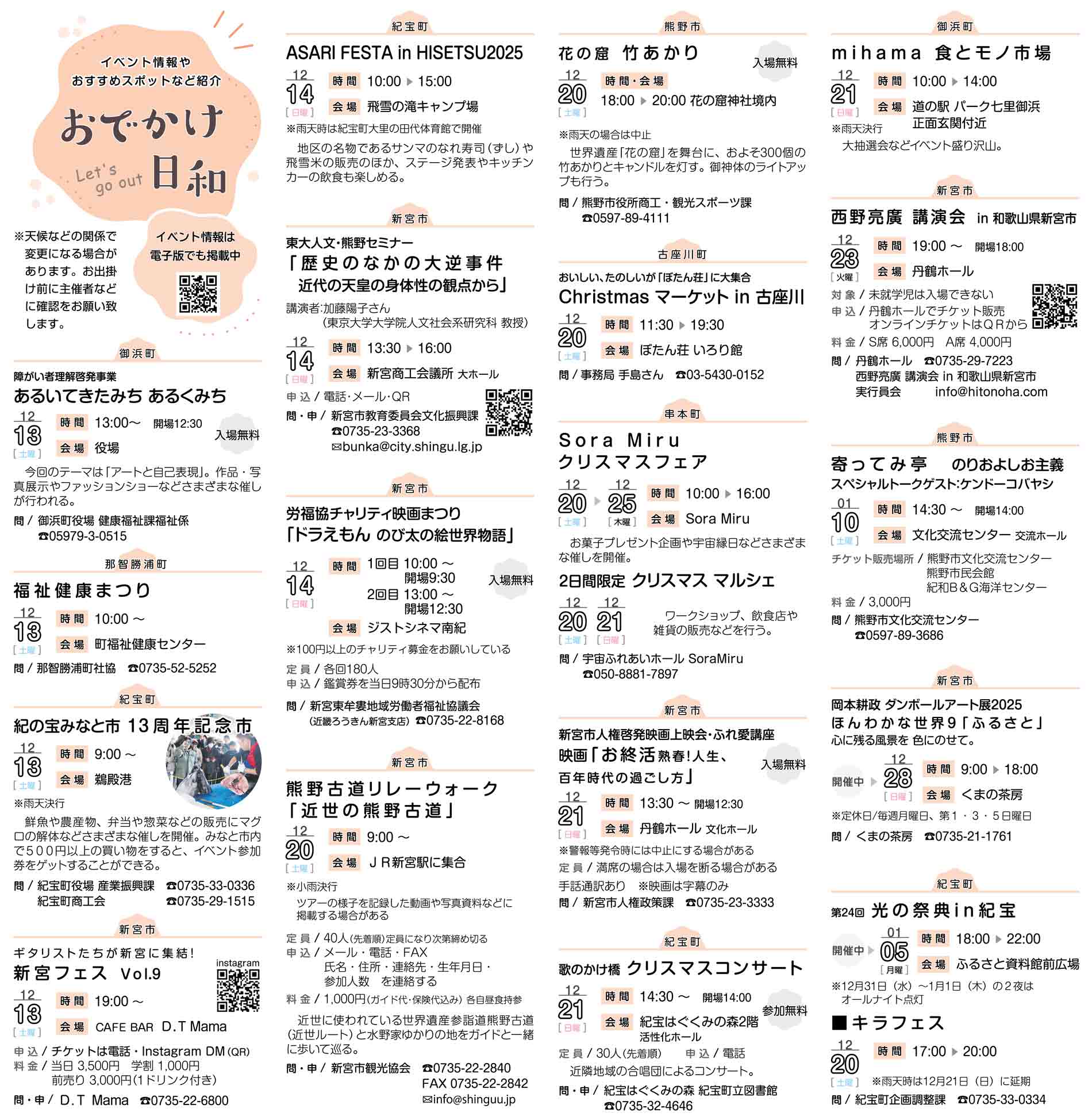 イベント情報 イベント情報トピックス おでかけ日和(12月12日掲載分) 2025年12月12日 16時00分 ▼イベント情報 https://digital.taiheiyo-np.jp/event/month/2025-12