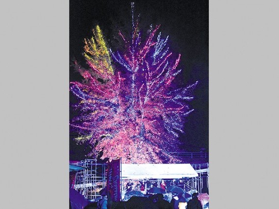 ジャンボツリー、見事な輝き 小口おもしろプレイランド 1月中旬まで点灯