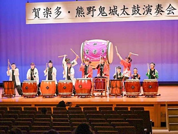 紀北町の「和太鼓・賀楽多」と、熊野市の「熊野鬼城太鼓」の合同演奏会がこのほど、相賀の海山公民館で開かれ、来場者約100人が迫力ある太鼓演奏を楽しんだ。 口火を切ったのは熊野鬼城太... 続きを読む