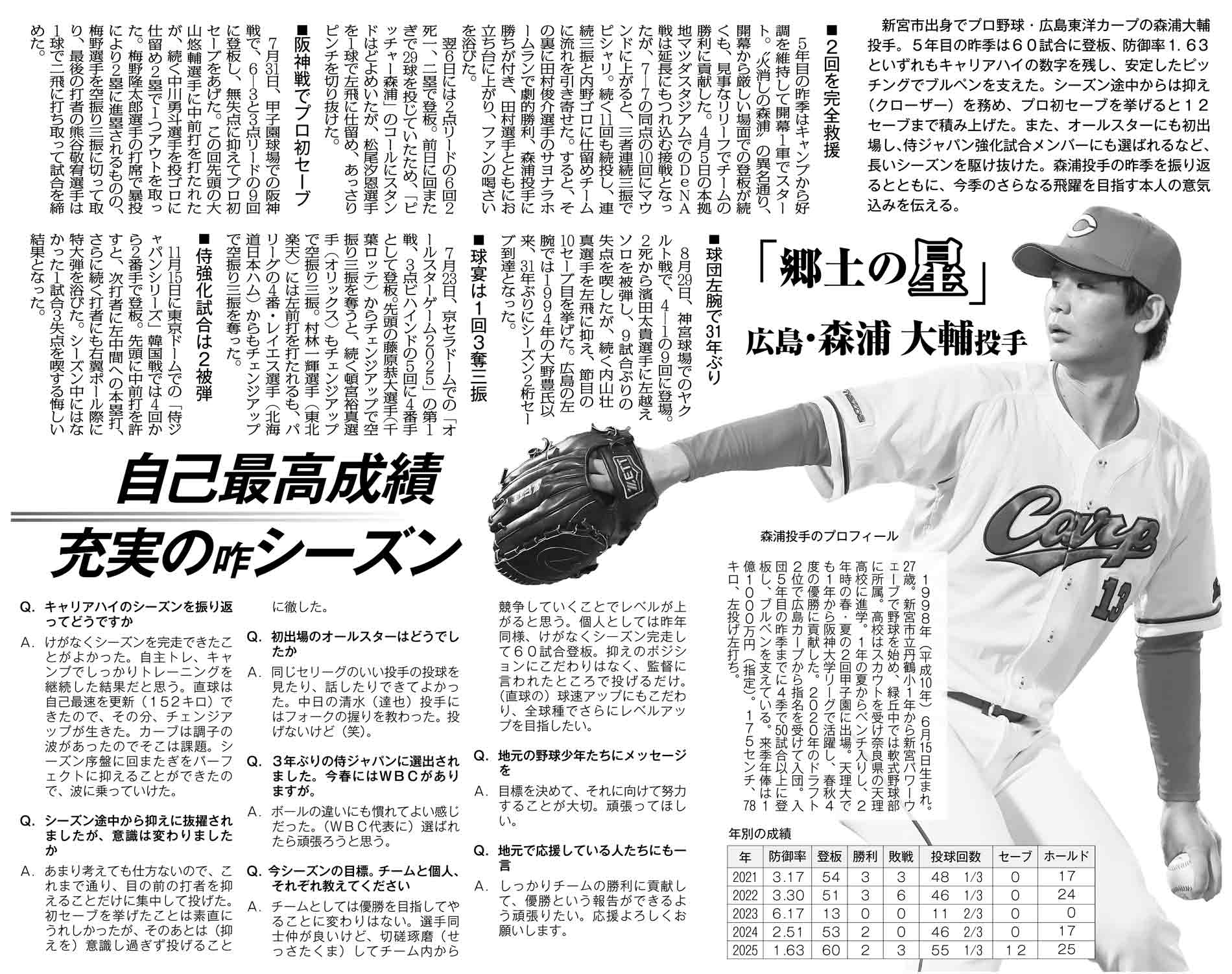 紀南新聞2026年元日特別号 「郷土の星」広島・森浦大輔投手