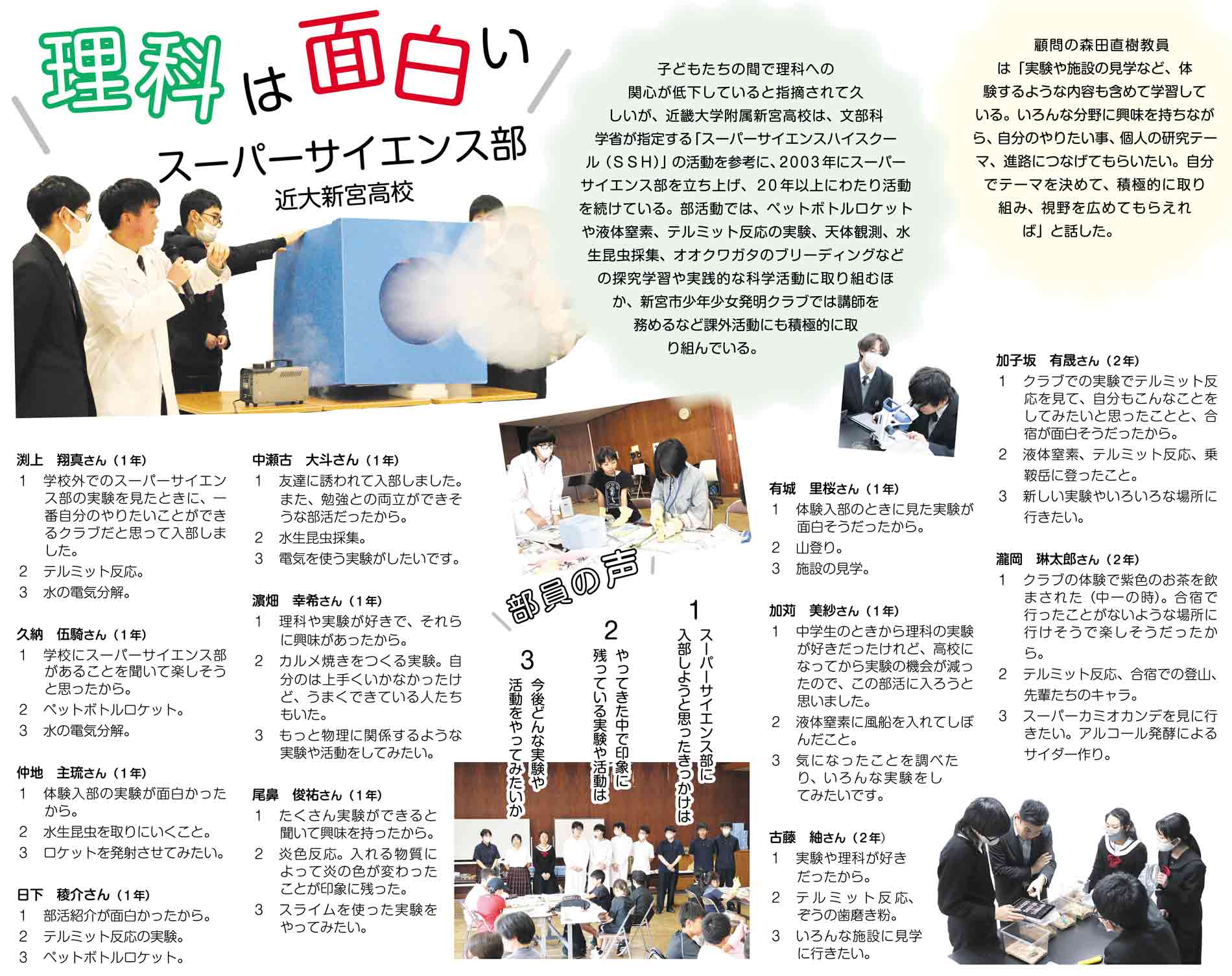 紀南新聞2026年元日特別号 理科は面白い 近大新宮「スーパーサイエンス部」