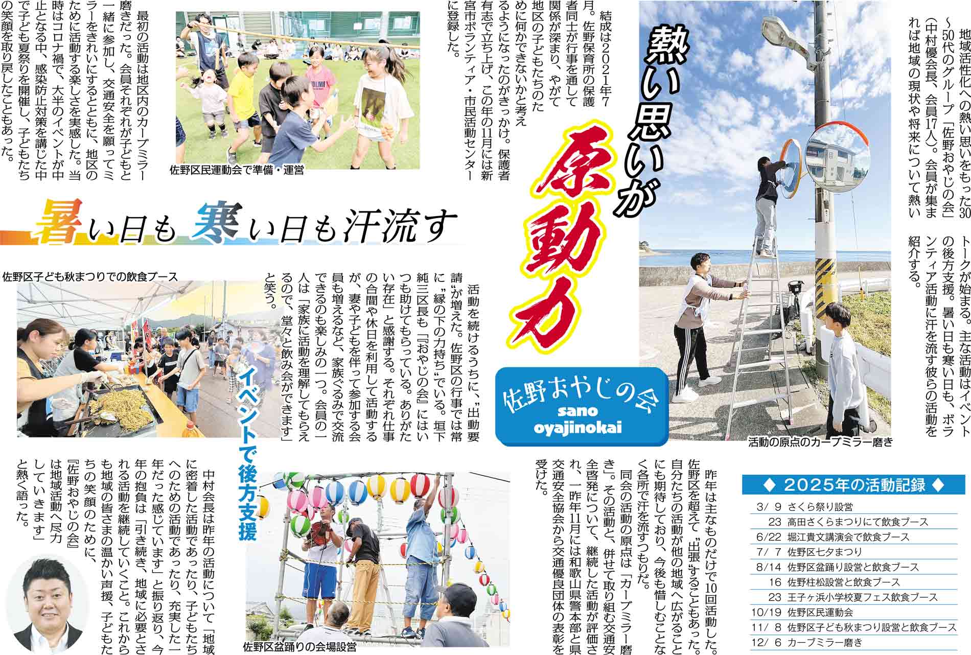 紀南新聞2026年元日特別号 熱い思いが原動力「佐野おやじの会」