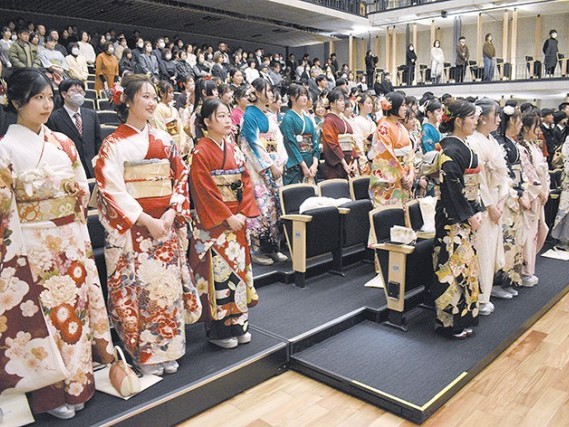 2026年(令和8年)新宮市二十歳の集いが4日、新宮市下本町の丹鶴ホールで行われた。今年度で20歳となる256人のうち、220人が華やかな振り袖や袴(はかま)、スーツなどの晴れ着姿で出席。家族や地域の人々が見守る中、ふるさとの友人とともに... 続きを読む