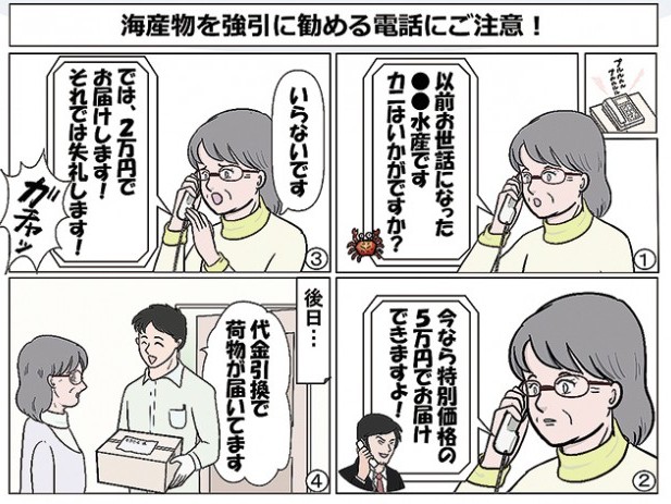 和歌山県消費生活センターは、ホットな消費者見守りニュース第106号を発行した。今回は「海産物を強引に勧める電話にご注意!」。 強引な海産物の電話勧誘販売に関する相談が寄せられている。不要な場... 続きを読む