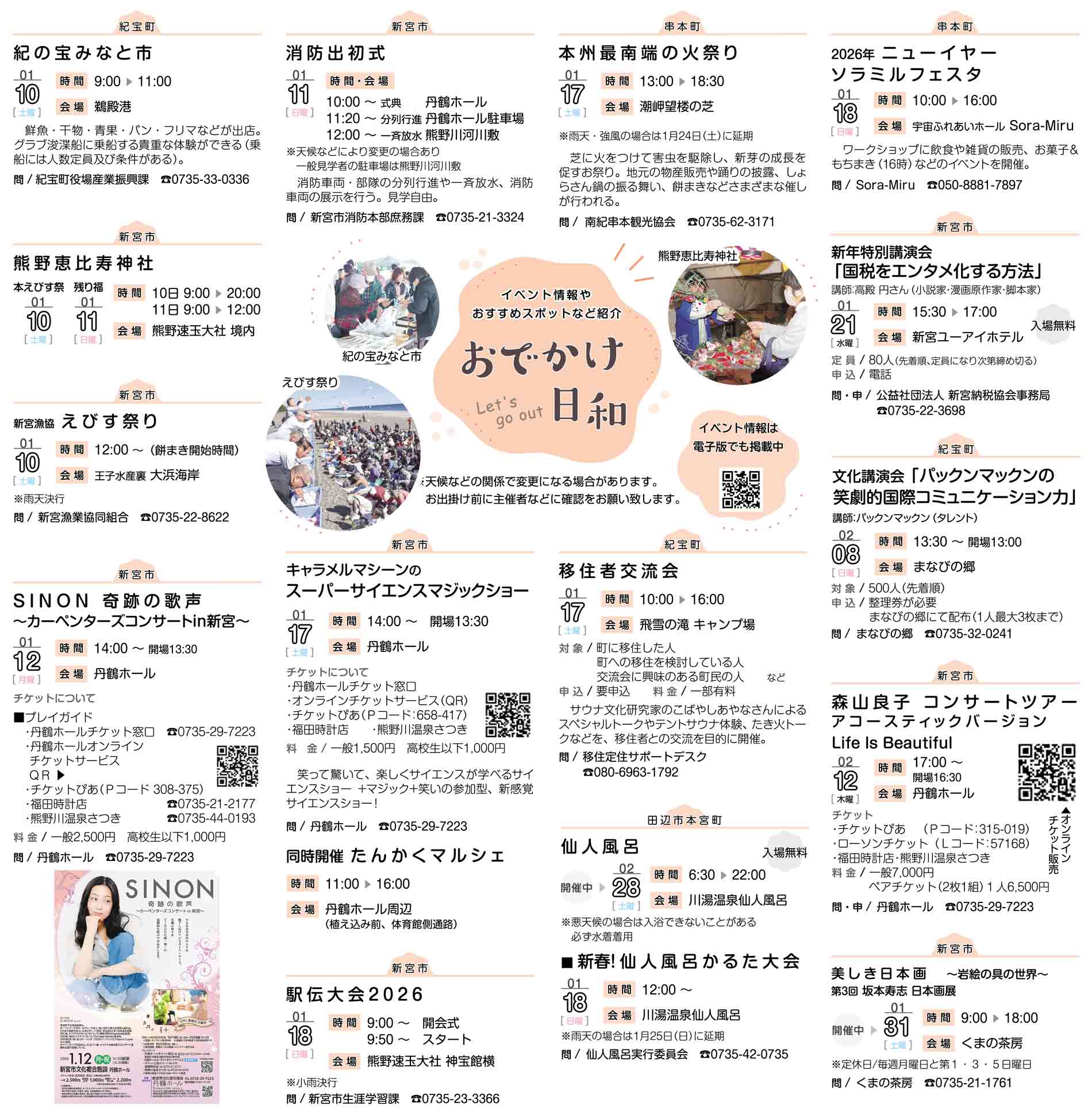 イベント情報 イベント情報トピックス おでかけ日和(1月9日掲載分) 2026年1月9日 16時00分 ▼イベント情報 https://digital.taiheiyo-np.jp/event/month/2026-01