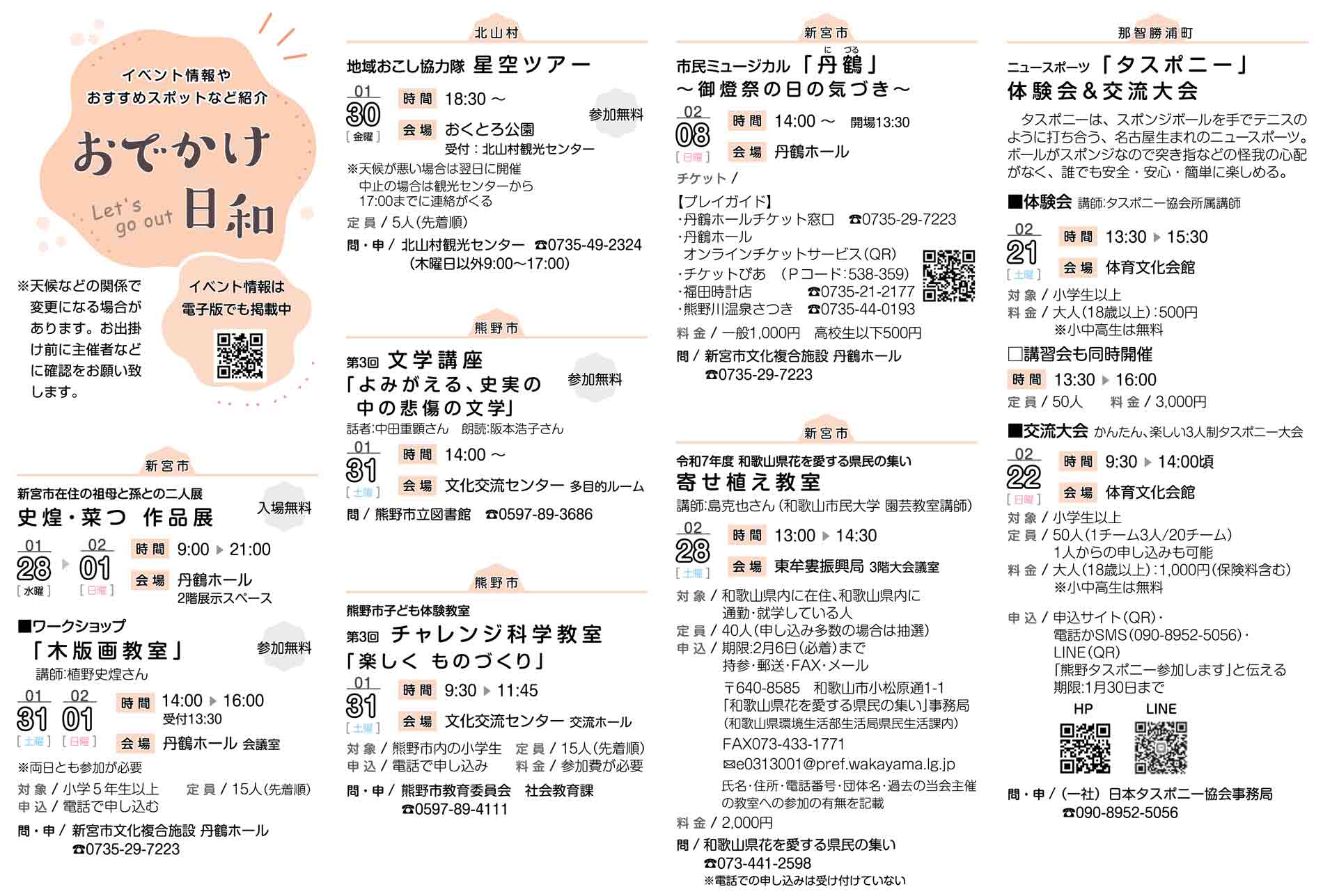 イベント情報 イベント情報トピックス おでかけ日和(1月27日掲載分) 2026年1月27日 16時00分 ▼イベント情報 https://digital.taiheiyo-np.jp/event/month/2026-01