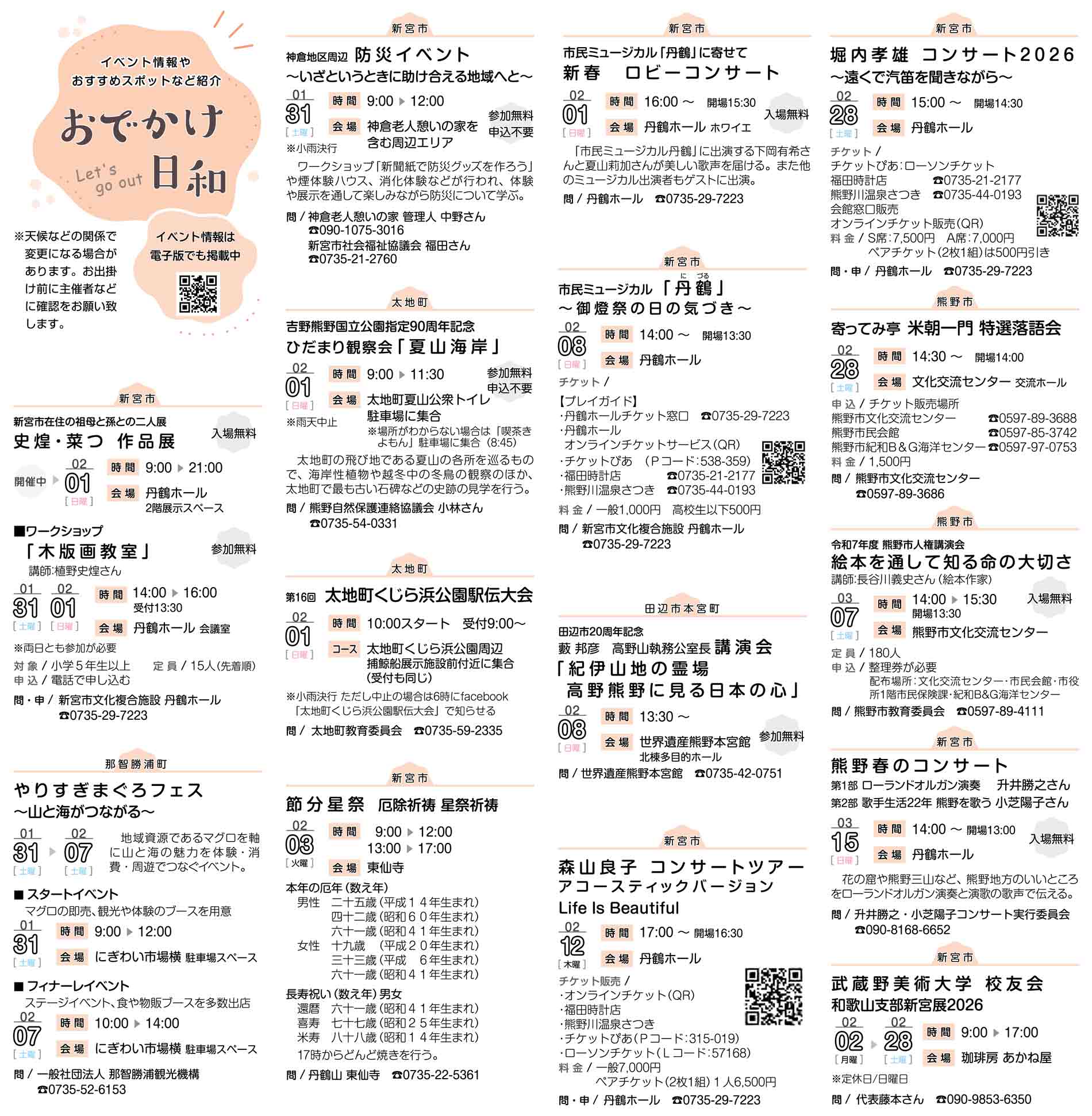イベント情報 イベント情報トピックス おでかけ日和(1月30日掲載分) 2026年1月30日 16時00分 ▼イベント情報 https://digital.taiheiyo-np.jp/event/month/2026-02