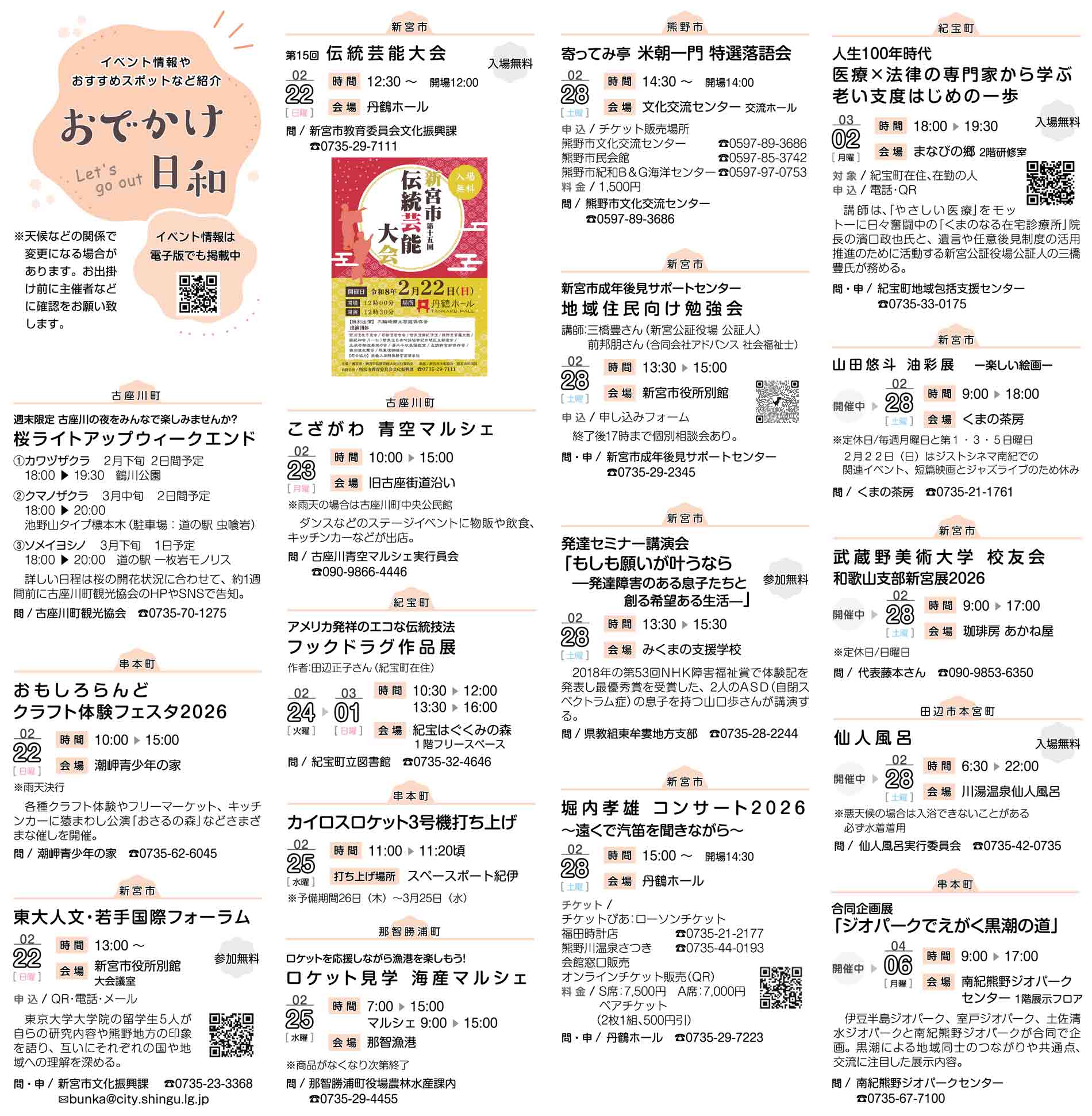 イベント情報 イベント情報トピックス おでかけ日和(2月20日掲載分) 2026年2月20日 16時00分 ▼イベント情報 https://digital.taiheiyo-np.jp/event/month/2026-02