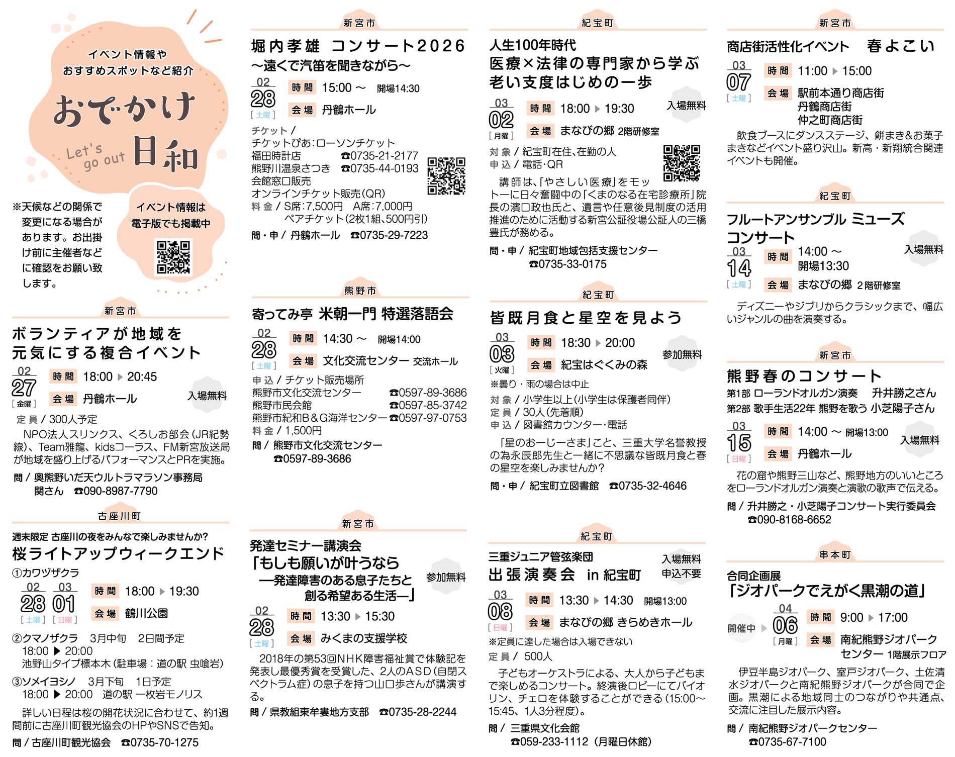 イベント情報 イベント情報トピックス おでかけ日和(2月27日掲載分) 2026年2月27日 16時00分 ▼イベント情報 https://digital.taiheiyo-np.jp/event/month/2026-02