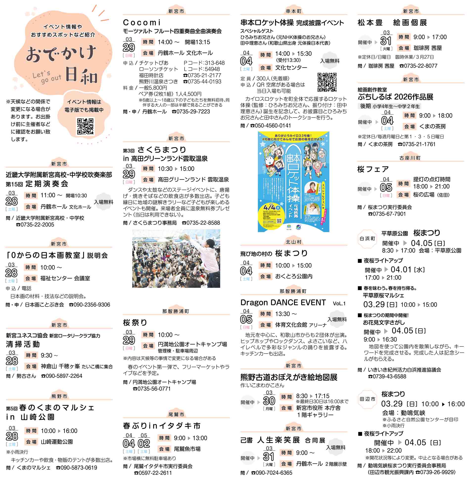 イベント情報 イベント情報トピックス おでかけ日和(3月27日掲載分) 2026年3月27日 16時00分 ▼イベント情報 https://digital.taiheiyo-np.jp/event/month/2026-03