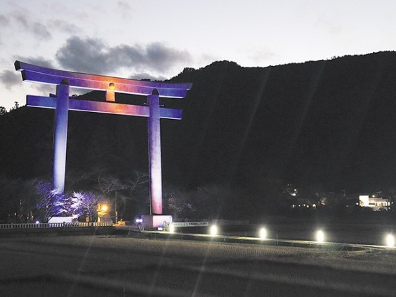 田辺市本宮町の熊野本宮大社は、例大祭(13日~15日)期間中の夜間、大鳥居のライトアップを実施する。 鳥居の下部にある照明器具から鳥居を照らす。毎年、例大祭や正月など、一大行事の際はライトアップを施しており、高さ約34メートルと日本一... 続きを読む
