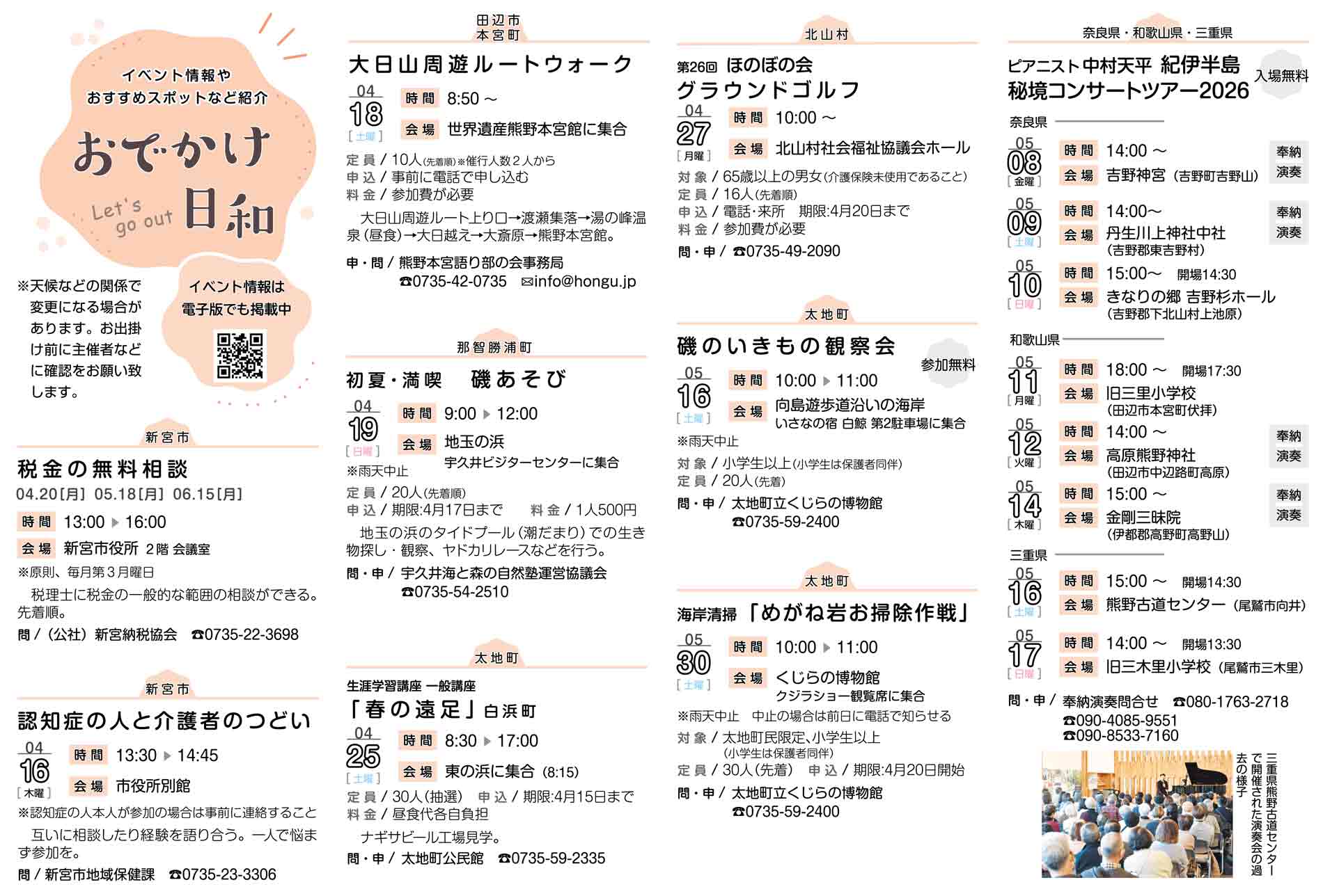 イベント情報 イベント情報トピックス おでかけ日和(4月14日掲載分) 2026年4月14日 16時00分 ▼イベント情報 https://digital.taiheiyo-np.jp/event/month/2026-04