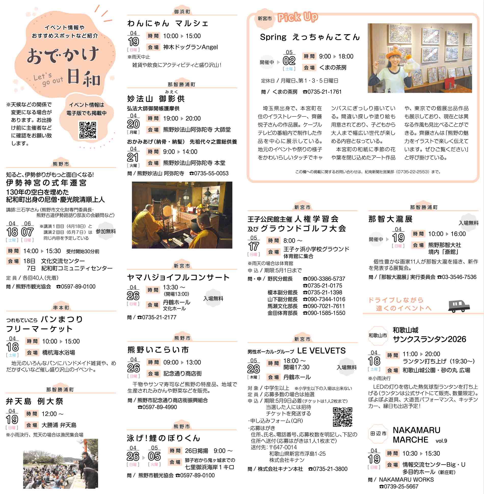 イベント情報 イベント情報トピックス おでかけ日和(4月17日掲載分) 2026年4月17日 16時00分 ▼イベント情報 https://digital.taiheiyo-np.jp/event/month/2026-04