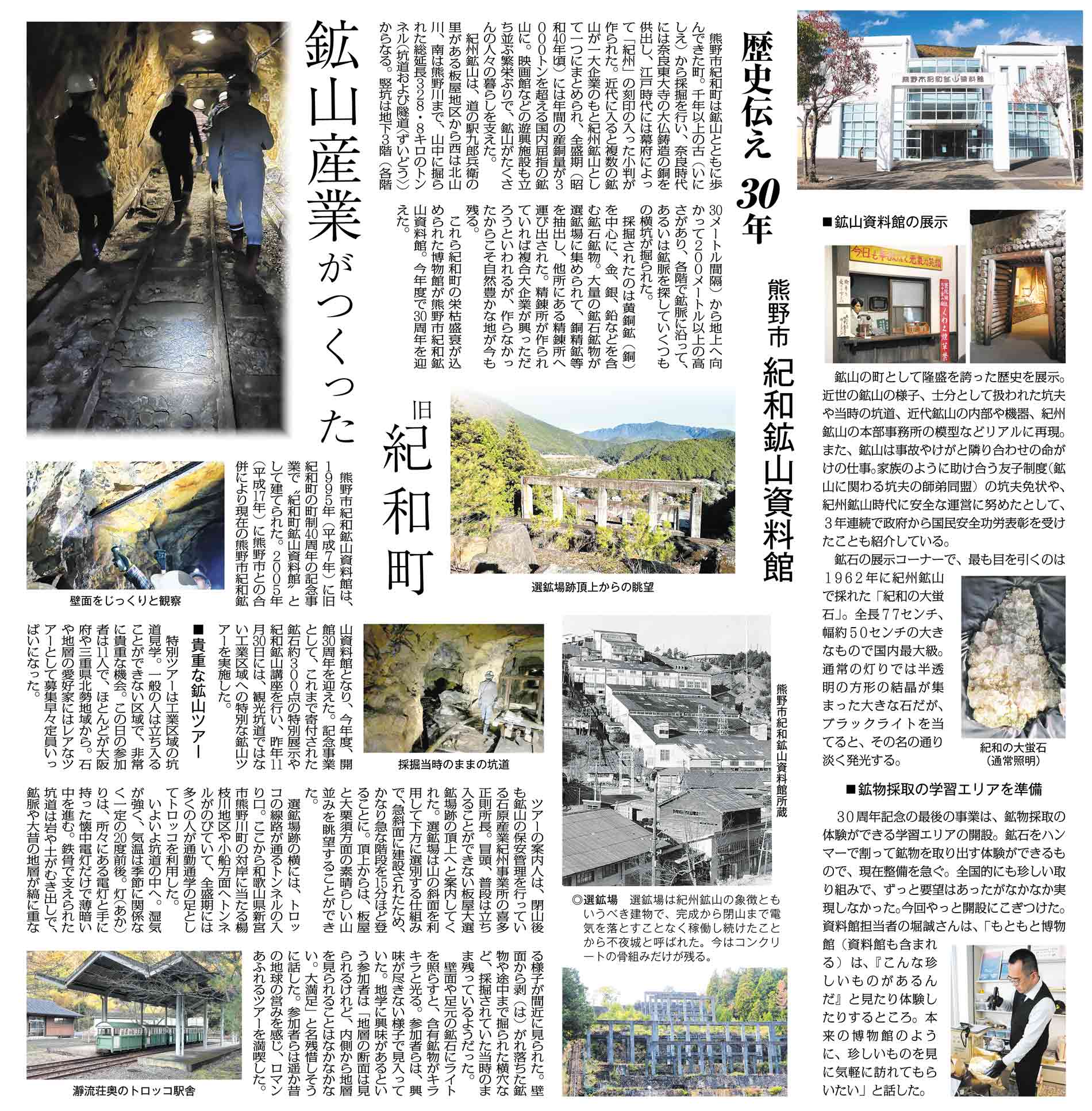 紀南新聞2026年元日特別号 歴史伝え30年「紀和鉱山資料館」
