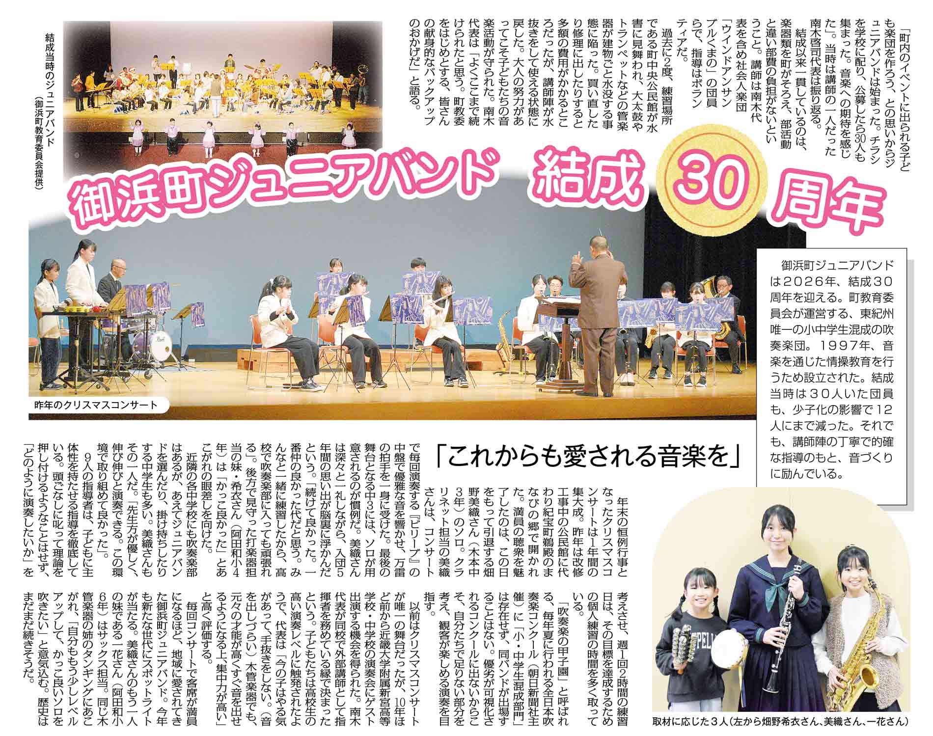 紀南新聞2026年元日特別号 御浜ジュニアバンド結成30周年