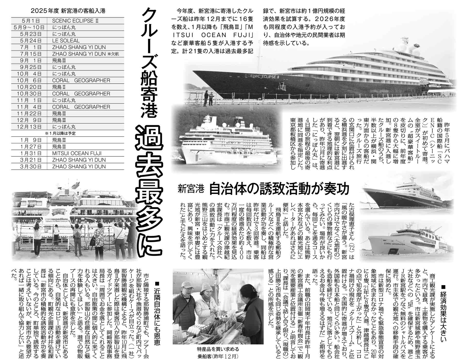 紀南新聞2026年元日特別号 クルーズ船寄港 過去最多に