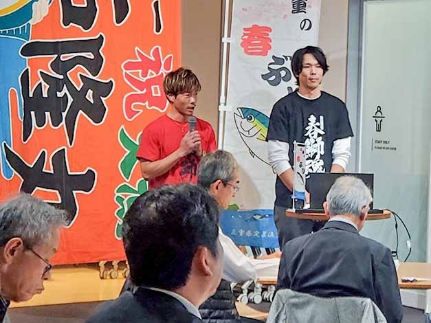尾鷲市はこのほど、東京都中央区日本橋室町の三重テラスで「みえ春ぶりプロモーション(第1弾)」を行った。「現役漁師らが語る三重県の春ぶりと定置網」などをテーマに講演などを行い、マスコミや飲食・流通関係者らに、尾鷲市などで水揚げされる「春ぶり... 続きを読む