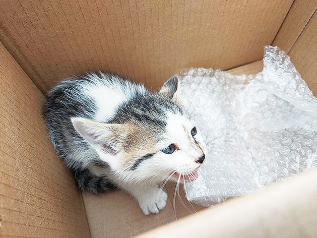 御浜町志原の事業所前に捨てられていた子猫(提供写真)