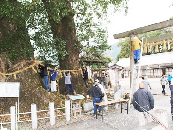 尾鷲市北浦町の尾鷲神社は22日、正月の飾り付けを行った。樹齢1000年を超え、県天然記念物に指定されている2本の大楠にも新しいしめ縄が掛けられた。 張り替えの前に、... 続きを読む