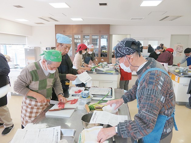 尾鷲市福祉保健センターで18日、男の料理教室があった。ゆうあいクラブ尾鷲の男性会員20人が減塩料理に取り組んだ。 一人で簡単に作れる料理を学んでもらおうと、年2回行っている。市食... 続きを読む