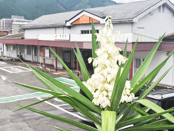 ◎…JR尾鷲駅前で、ユッカの花が咲いている。とがった葉が生い茂る木の頂点に、たくさんの白い花をつけている。 ◎…ユッカはリュウゼツラン科の多年草。北アメリカ大陸から中... 続きを読む