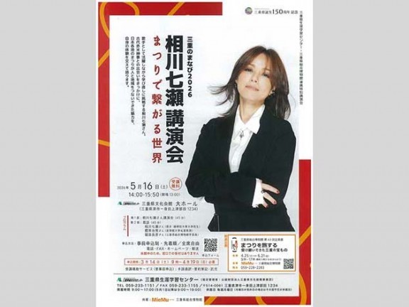 三重県生涯学習センターは5月16日(土)午後2時から3時50分まで、津市一身田上津部田の県文化会館大ホールで、歌手で、國學院大学大学院で民俗学を専攻し、伊勢志摩アンバサダーも務める相川七瀬さんの講演会を開く。 ... 続きを読む